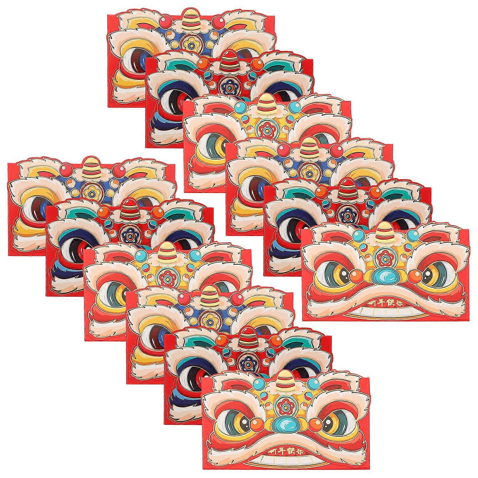 12pcs Traditional Red Pocket Envelopes Dragon Year Cartoon Design Lucky Money Packets for Weddings, Birthdays & Lunar Festival Gifts