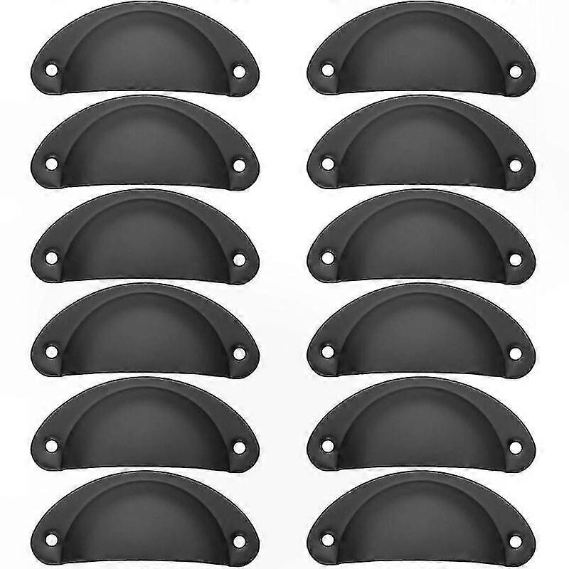 12Pcs Retro Cabinet Handles, Curved Iron Drawer Knobs, 8.2cm x 3.5cm, Black Furniture Handles for Kitchen and Cupboard Doors