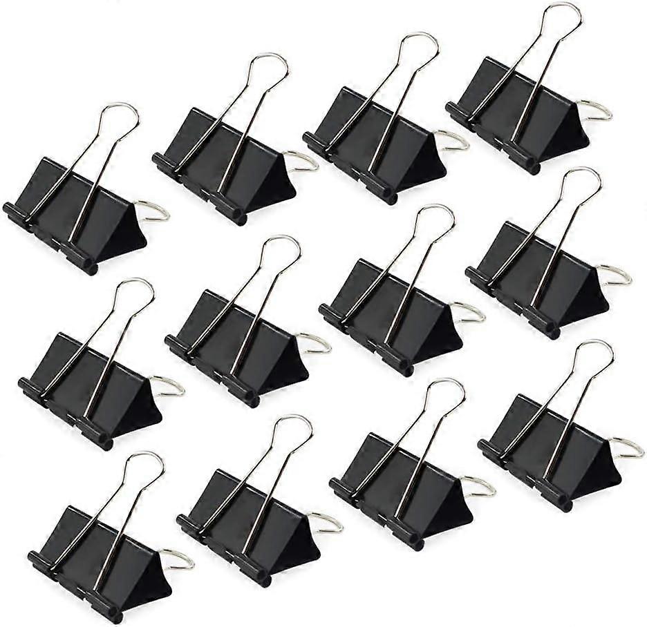 12 pcs Binder Clips, Black Metal Paper Clips, 41mm Sizes Foldback Clips Clamp Binder Clips for Office Home Supplies