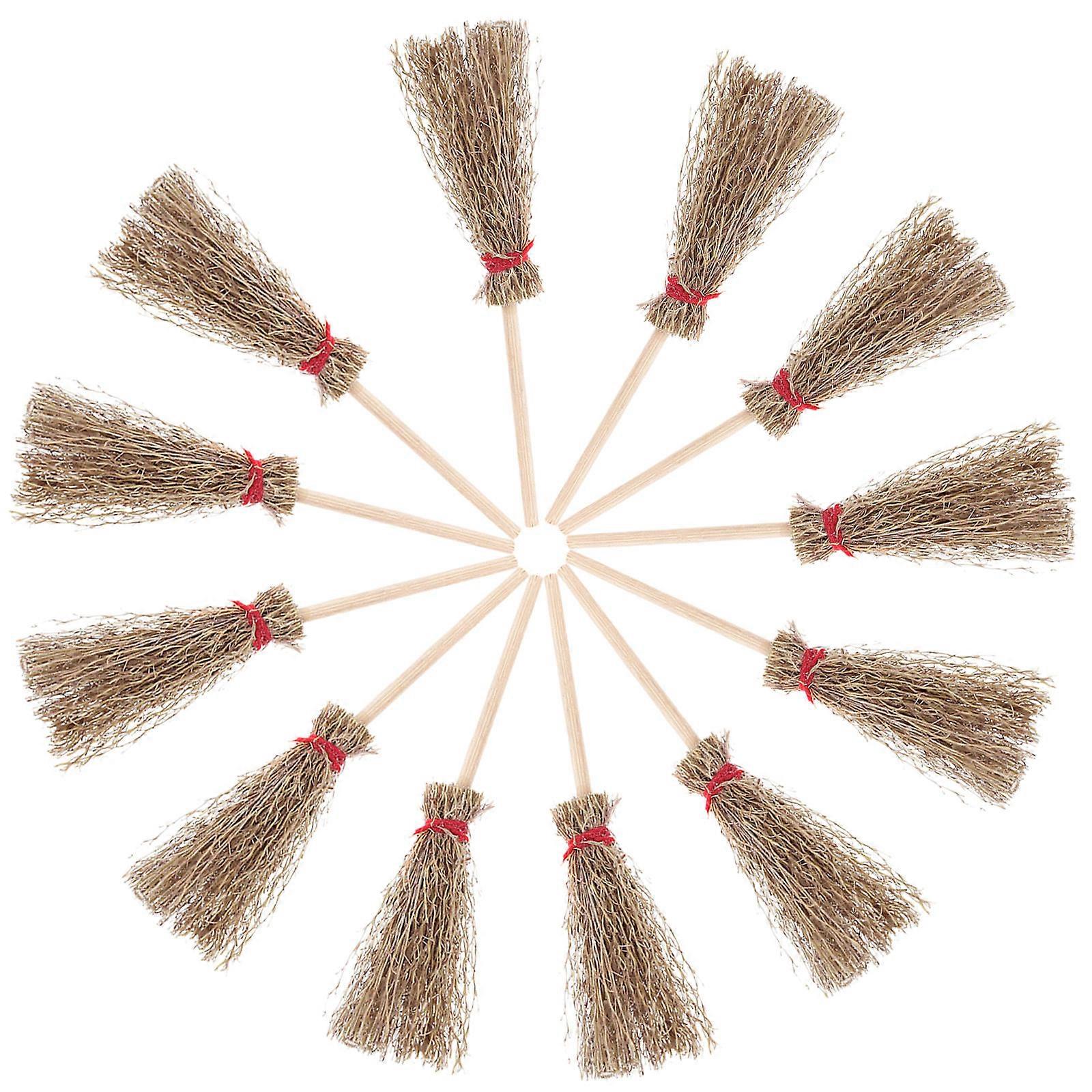 12pcs Mini Broom Halloween Decoration, Red Rope Straw Broom, Wizard Accessory, Witches Hanging Prop, Large Size