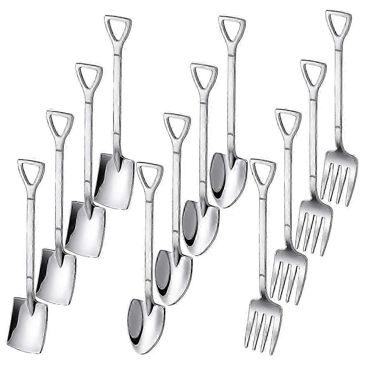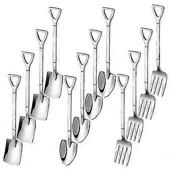 12PCS Dessert Spoons and Forks Set, Shovel Shape Ice Cream Spoons, Mini Shovel Spoons for Coffee Yogurt Cake Fruit