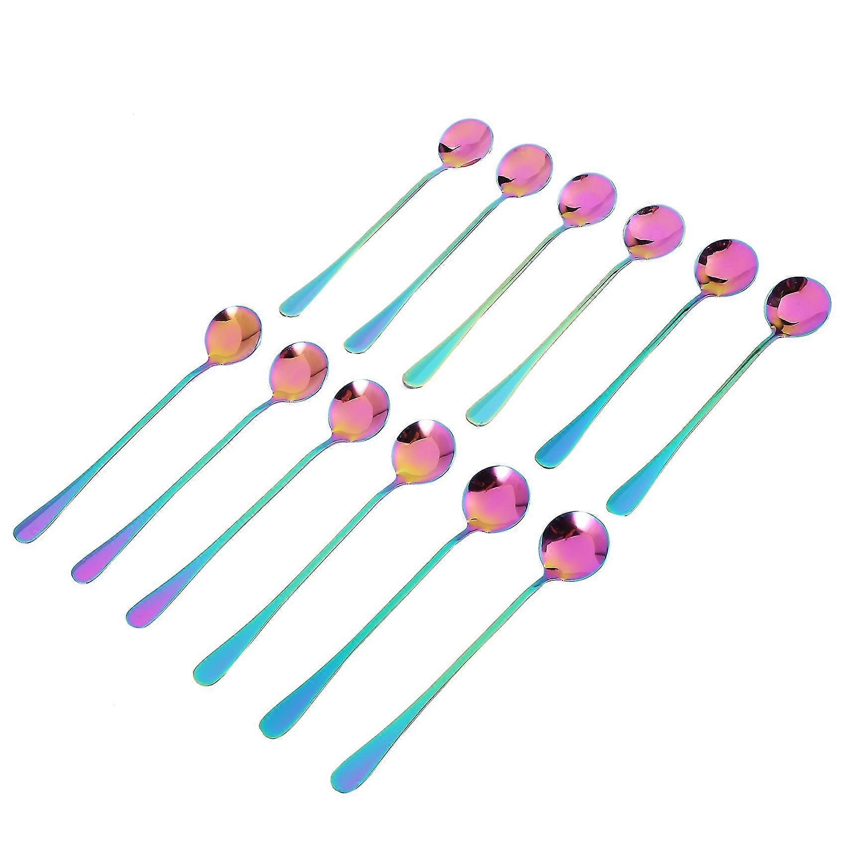 12pcs Stainless Steel Spoon,dessert/ice Cream/coffee Rainbow Spoon,stirring Teaspoons,coffee Spoon F