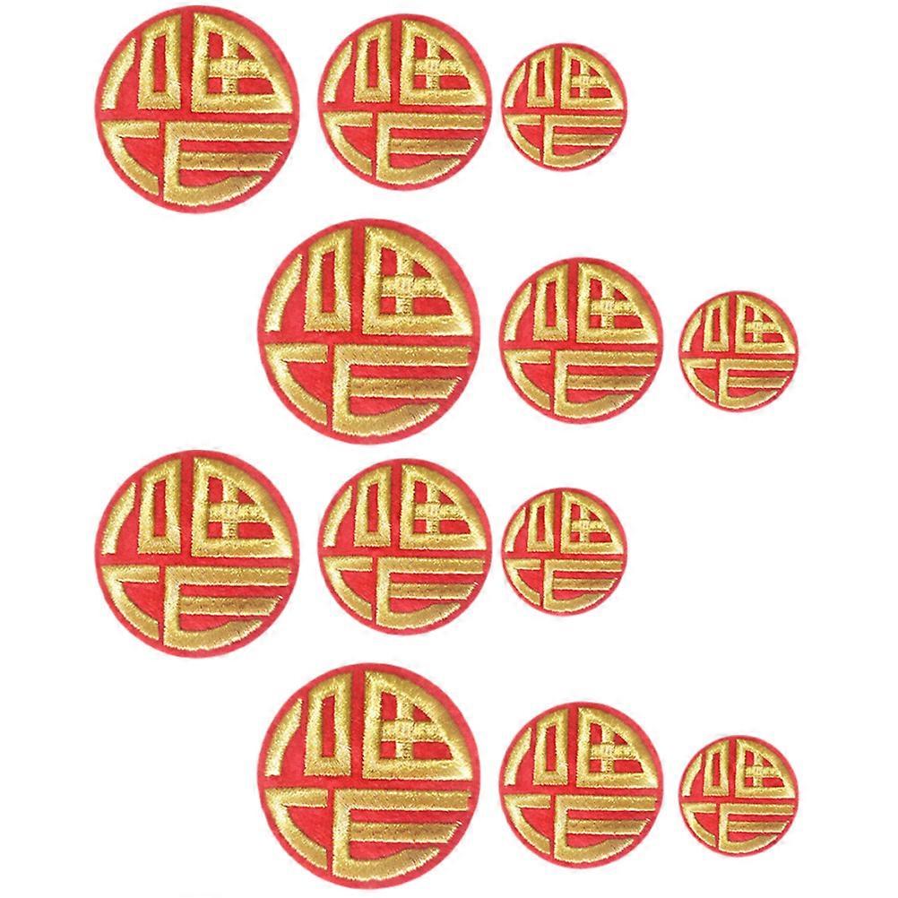 12pcs Chinese Fu Character Embroidered Iron On Patches for Clothing, Bags & Crafts – Durable Applique for Easy Repair & Decoration