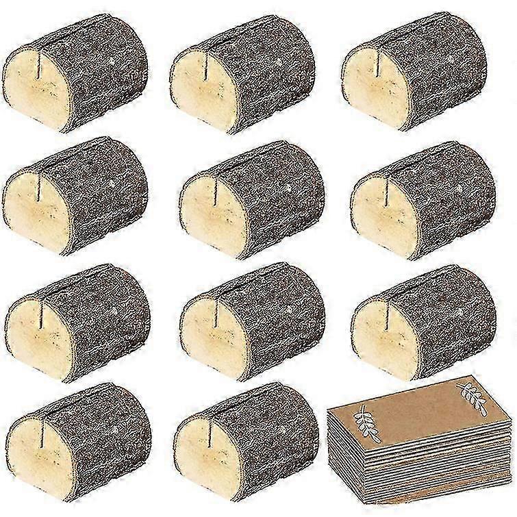 12pcs Rustic Natural Wood Place Card Holders and Kraft Table Place Cards, Chic Table Number Holders, Table Sign Stand, Name Card Photo Picture Holders