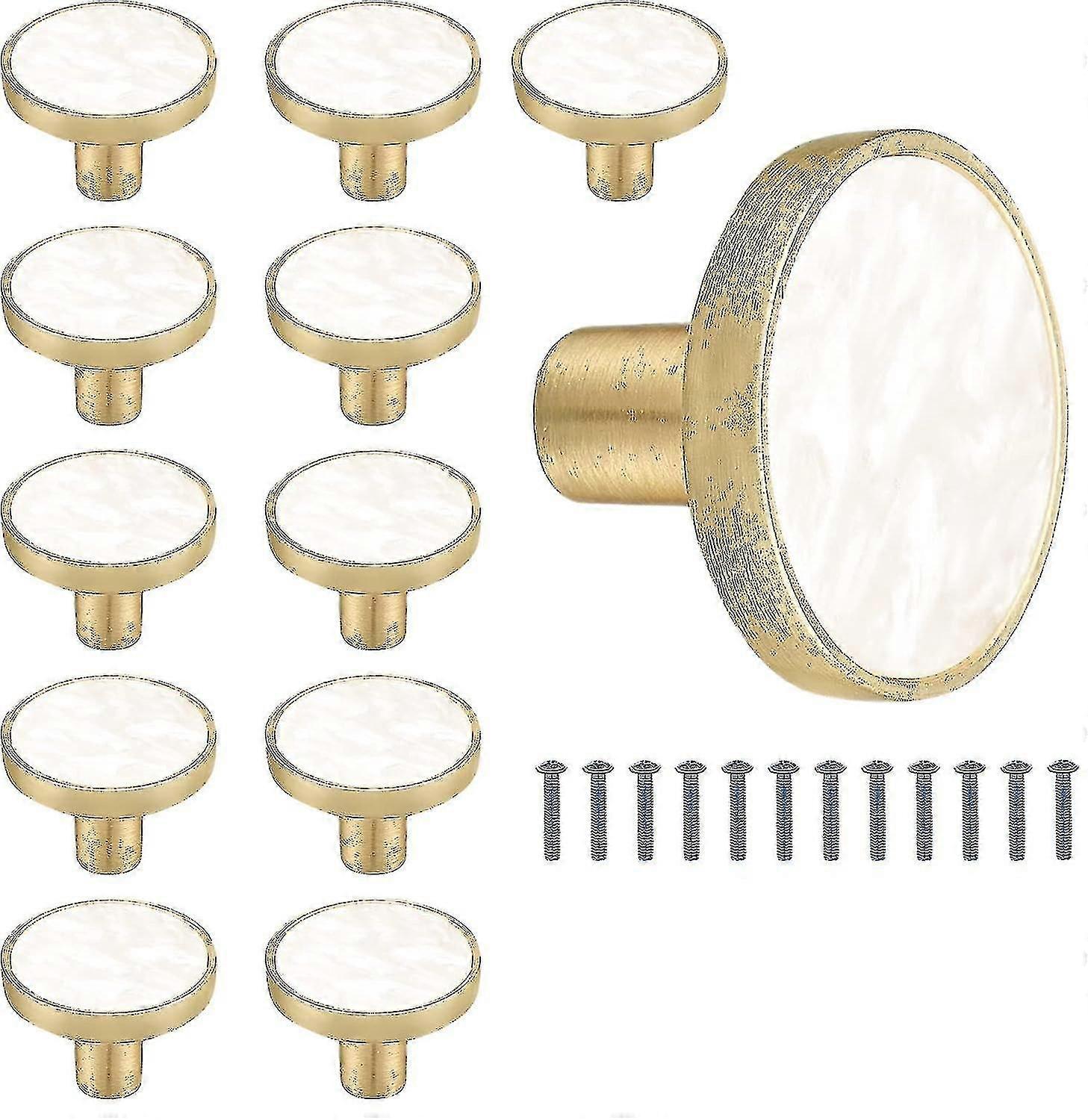 12 Pieces Marble Brass Drawer Knobs - 32mm Cabinet Handle Pulls, Gold Cupboard Knobs