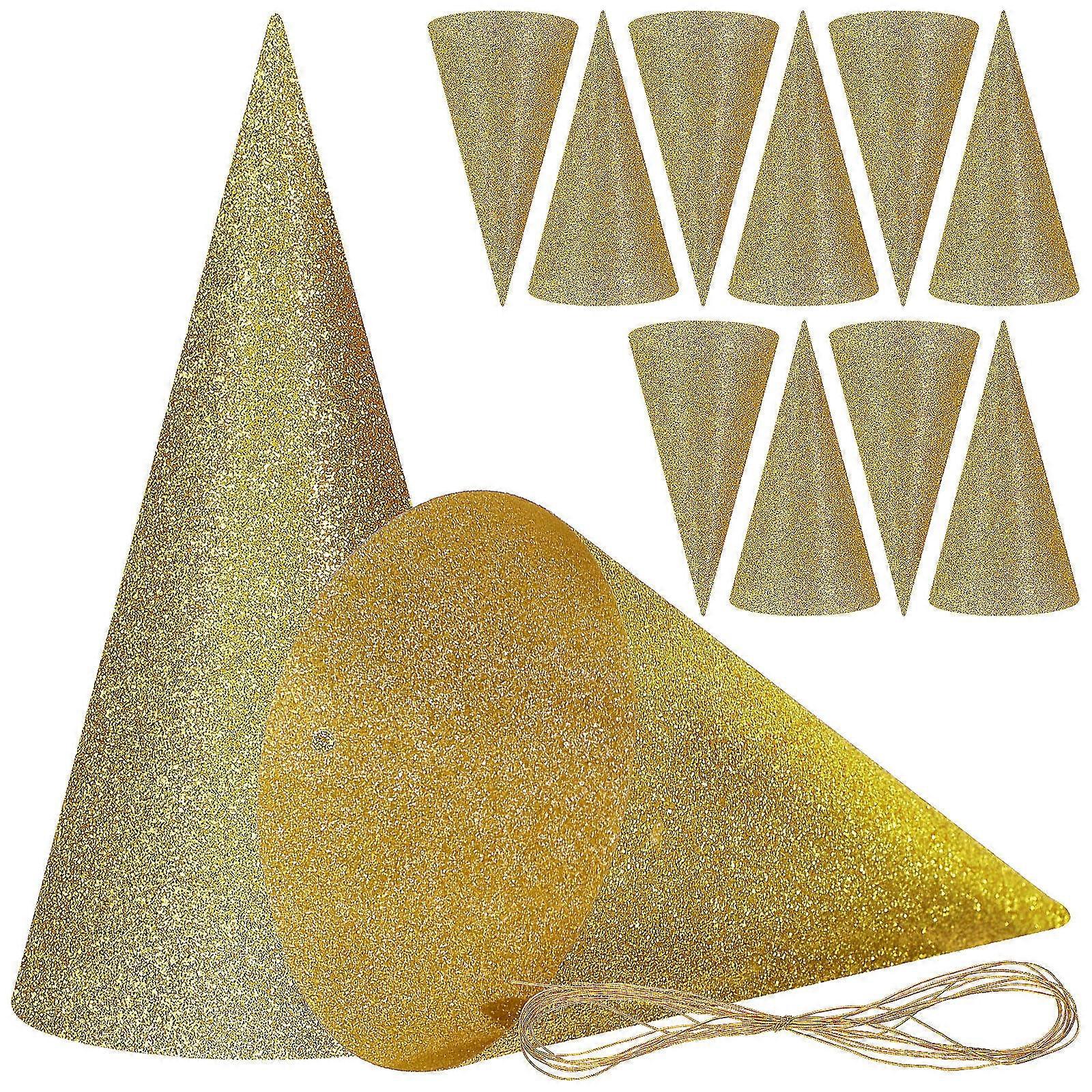 12pcs Gold Glitter Party Cone Hats Funny Birthday Hat for Adults Kids, Baby Shower Favors, Photo Props