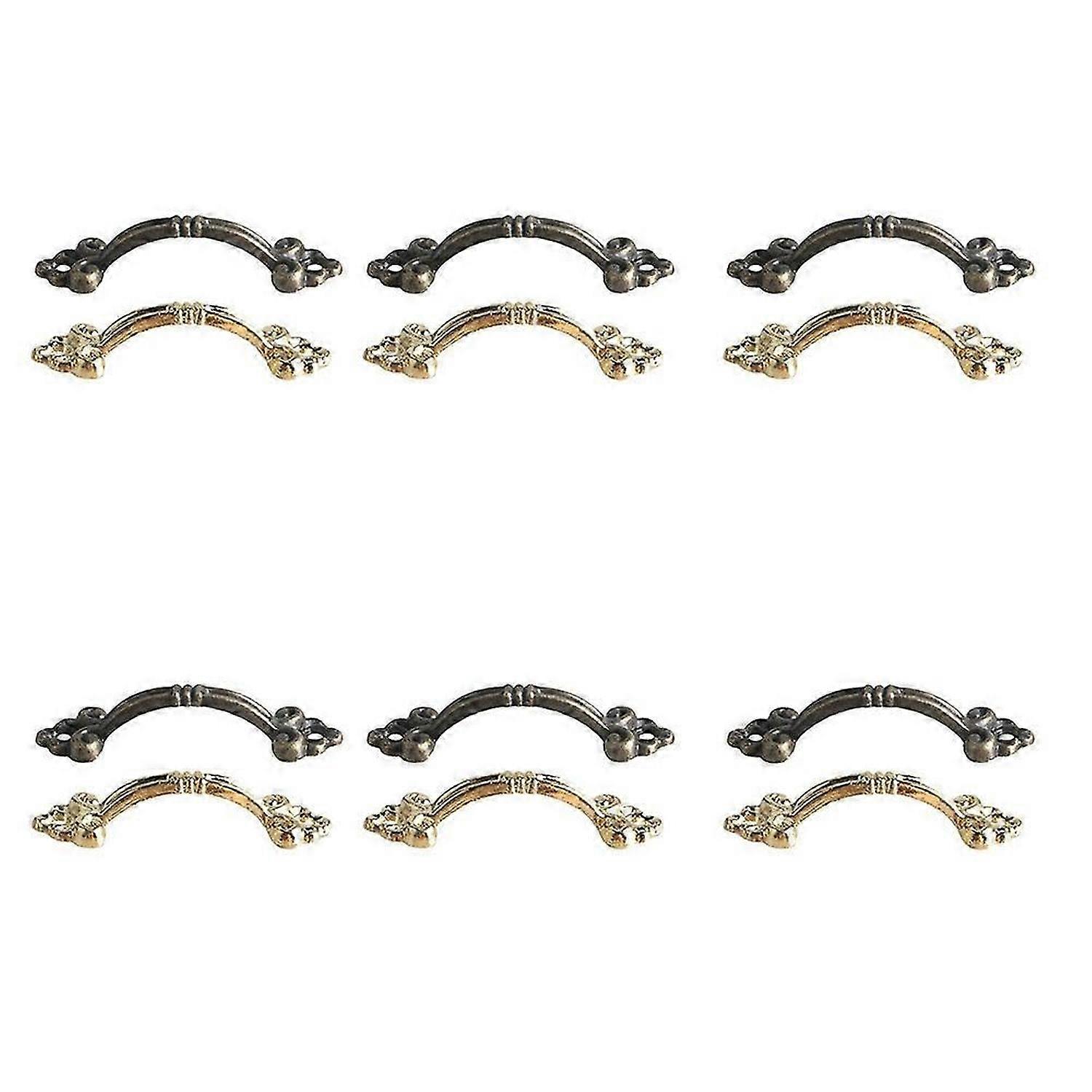 12Pcs Antique Brass Drawer Pulls, Small Vintage Decorative Cabinet Handles Knobs for Jewelry Box Chest Dresser Wooden Case