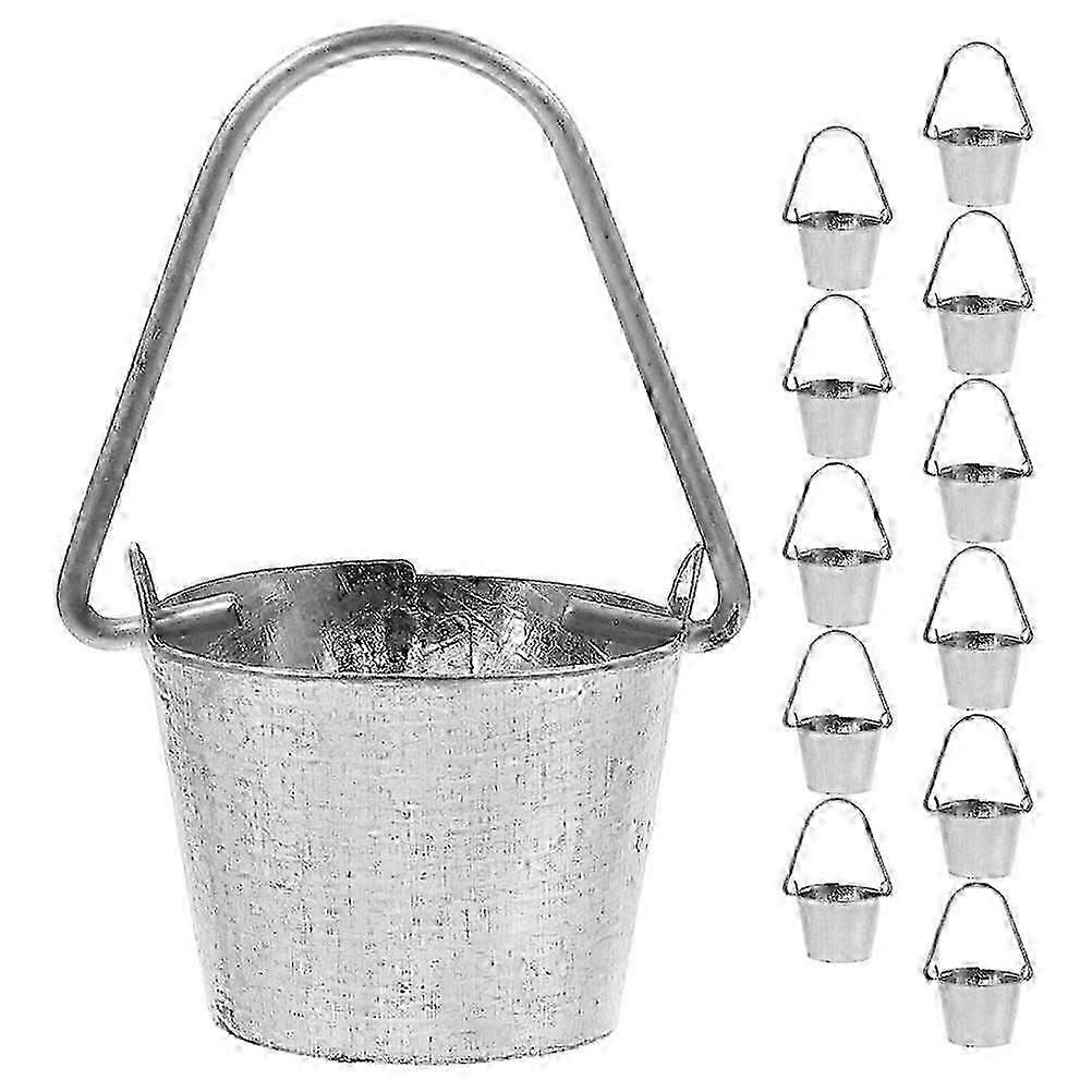 12Pcs Miniature Water Bucket Decor Doll House Iron Bucket Miniature Barrel Model Garden Decoration