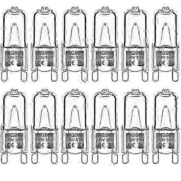 12Pack G9 Halogen Bulbs 33W 230V 2800K Warm White 380lm Clear Capsule Halogen Bulbs Dimmable No Flash No Flicker