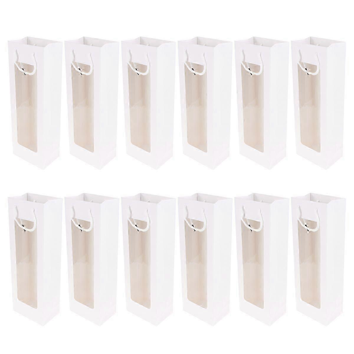 12pcs Single Red Wine Bag Gift Bag Kraft Paper Wine Tote Bag Portable Packging Bag Transparent Window Wine Carrier Bags (White)