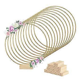 12PCS 12in Metal Floral Hoop Centerpiece Ribbon 12 Wood Stands