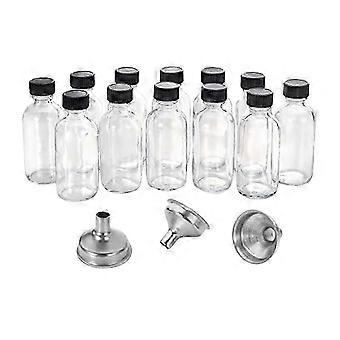 12pc 2 Oz Small Clear Glass Bottles With Lids 3 Funnels - 60ml Bottles For Juice Ginger , Whiskey