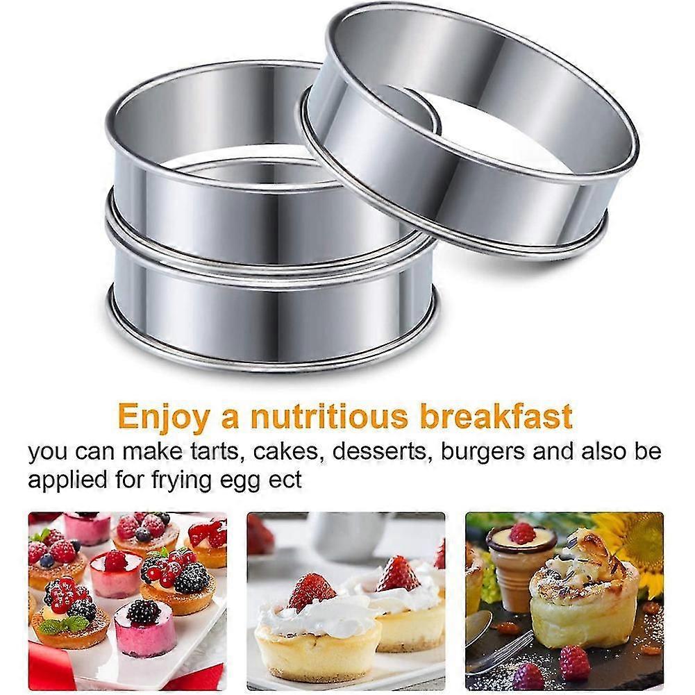 12 Pieces 3.15 Inch Double Rolled Tart Rings Stainless Steel Round Muffin Rings Metal Crumpet Rings Molds