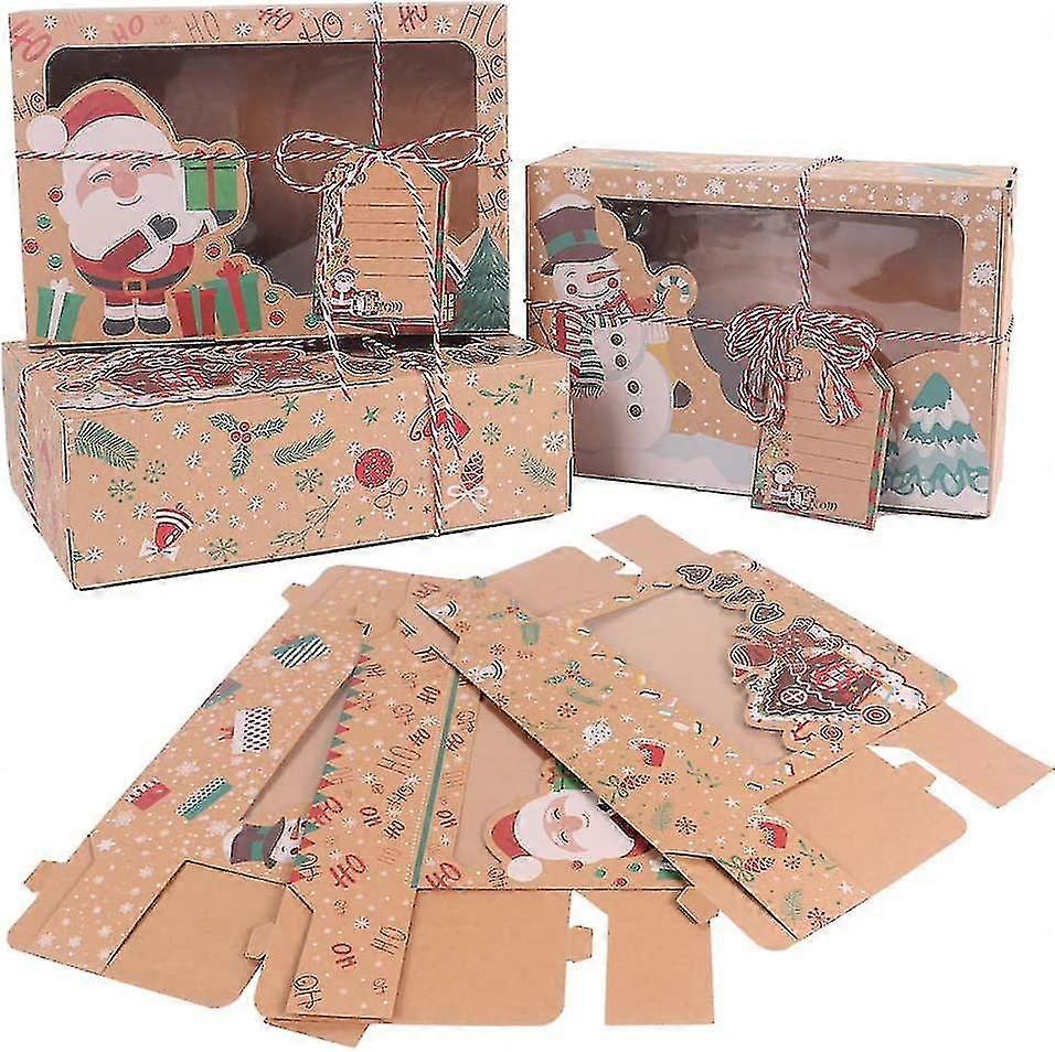 12 Pieces Diy Christmas Kraft Paper Cookie Gift Box With Clear Window Christmas - xinxx