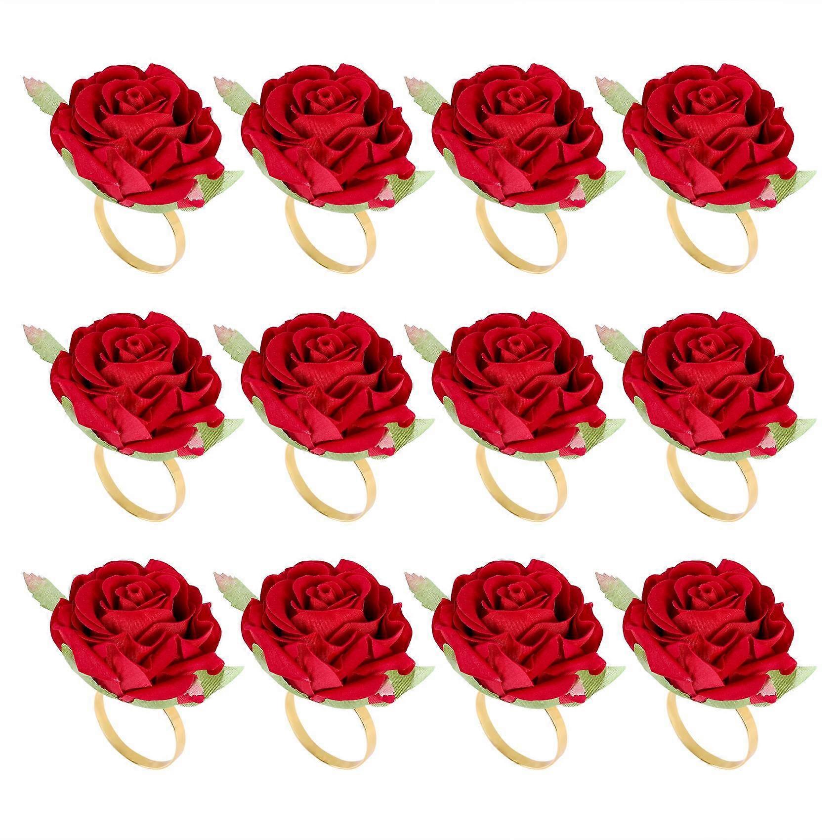 12 PCS Red Shape Towel Buckle Napkin Ring Wedding Party Valentine's Day Hotel Table Decor Metal Gol