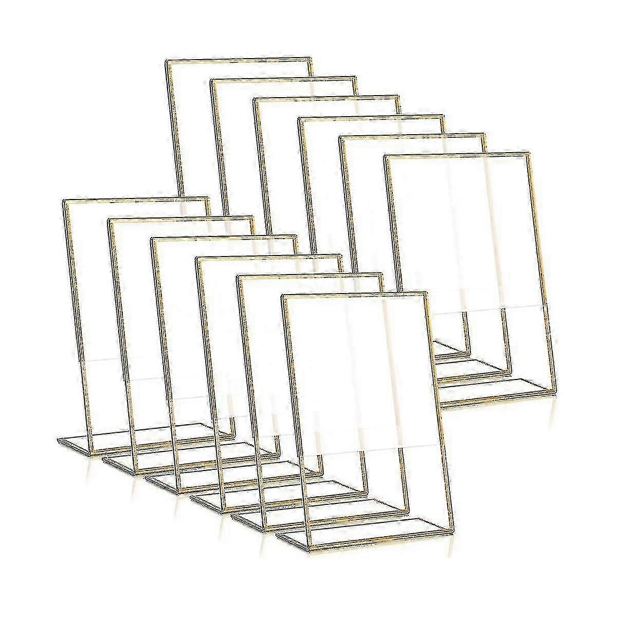 12pcs Gold Frame Acrylic Sign Holder Wedding Table Number Holder Slanted Menu Double Sided Stand, 4