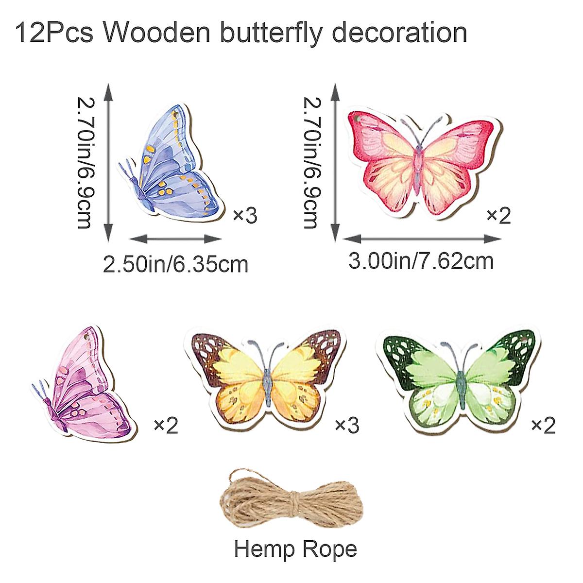 12pcs Colourful Wooden Butterfly Pattern Ornament Donut Pendant Scrapbooking Art Collection Craft For Handmade Accessory Home