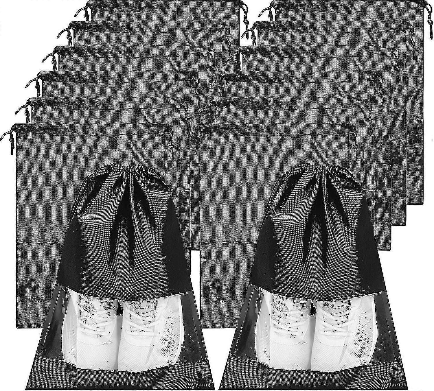 12pcs Shoe Bags For Travel - Large Dustproof Drawstring Shoes Pouch Packing Organizers For Men Women, Black