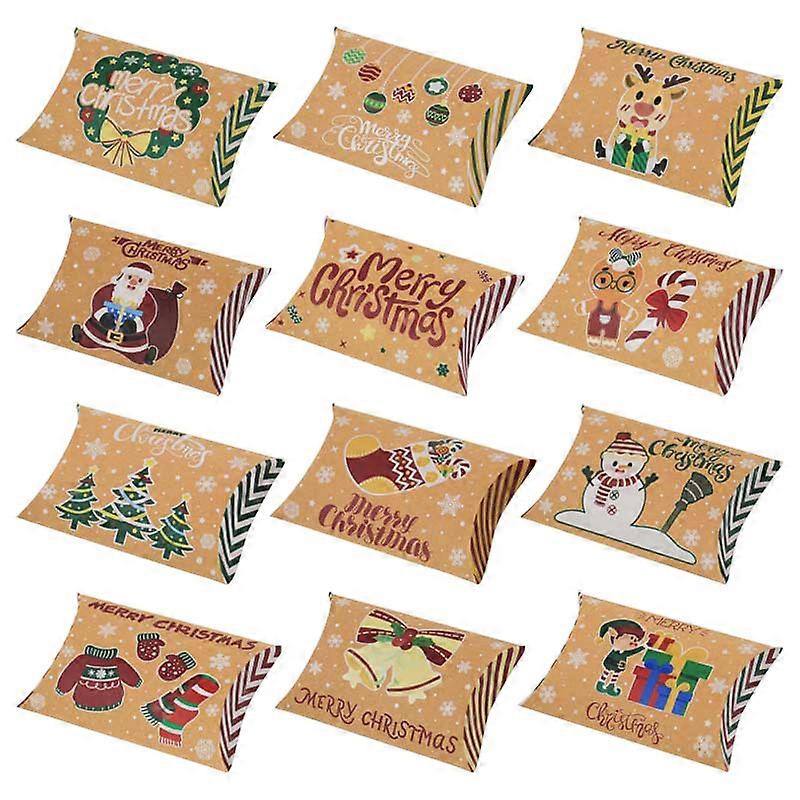 12pcs Christmas Pillow Shape Candy Box Merry Christmas Kraft Paper Gift Box Packging Kids Favors Happy New Year Navidad 2023