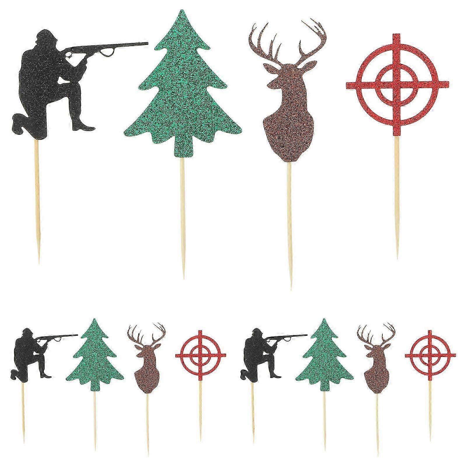 12pcs Birthday Party Cake Decoration Hunting Theme Cupcake Topper Birthday Cake Topper