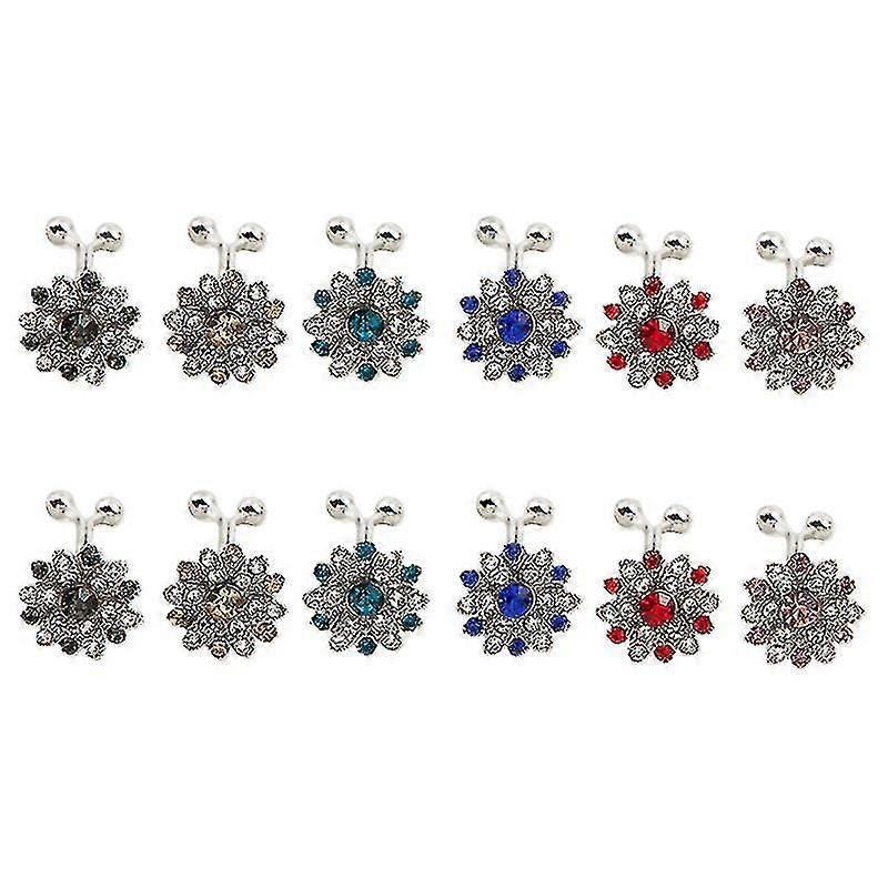 12pcs Muslim Hijab Metal U Clips Rhinestone Flower Jewelry Scarf Shawl Safey Pins Islamic Ethnic Abaya Headscarf Brooch Buckles Accessories