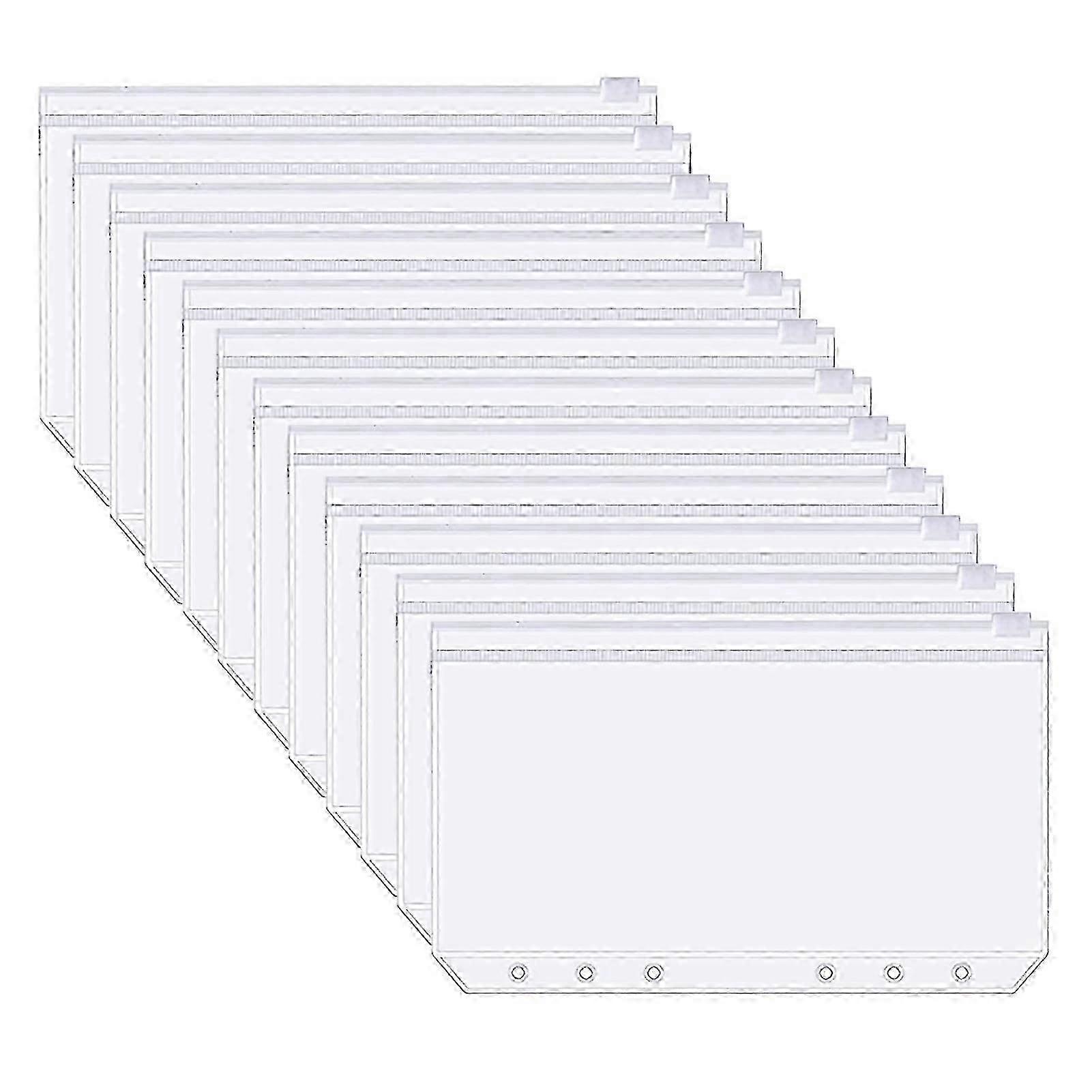 12Pcs A6 Binder Pockets Transparent PVC 6-Hole Binder Pockets Zip Folder Plastic Money Budget Envelopes
