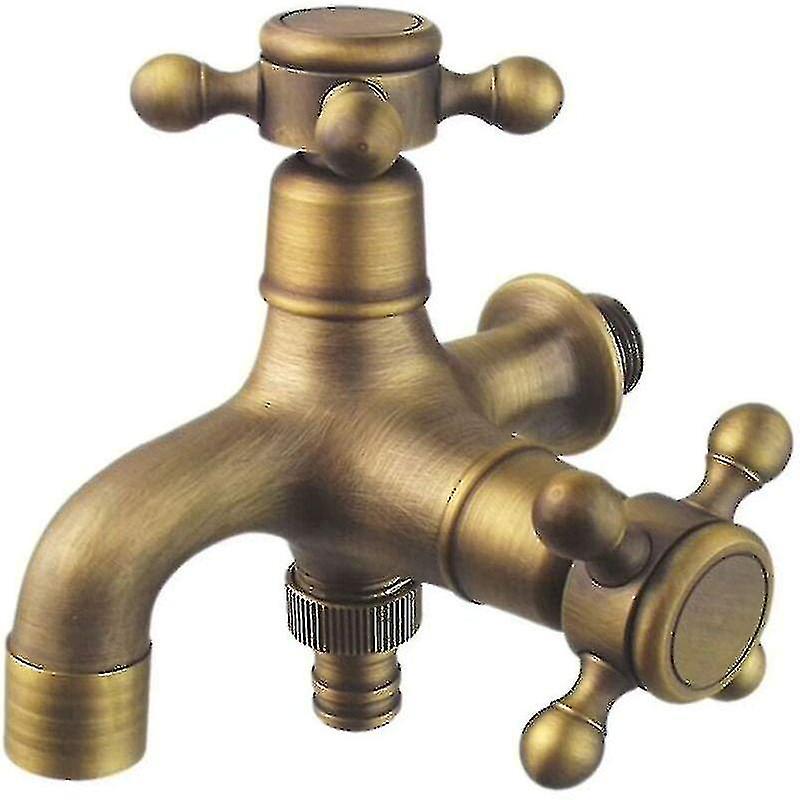 Double Drain Garden Faucet Antique Style Double Ball Garden Faucet Garden Lever Faucet Washing Machine Faucet 1/2" Copper