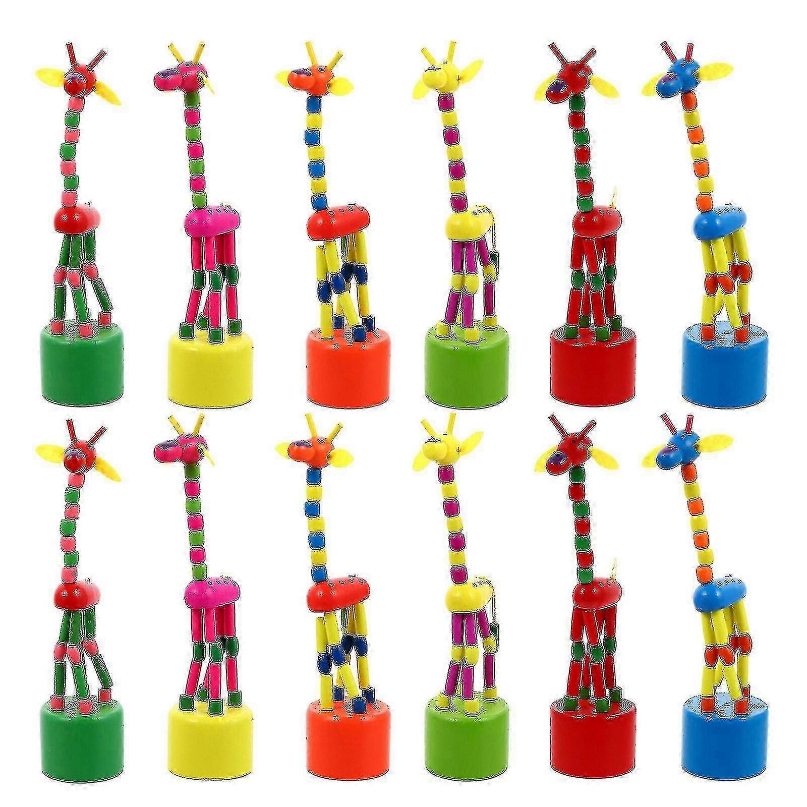 12pcs Wood Animal Giraffe Figurine Push Up Toy Dancing Animal Finger Puppet-Yvan