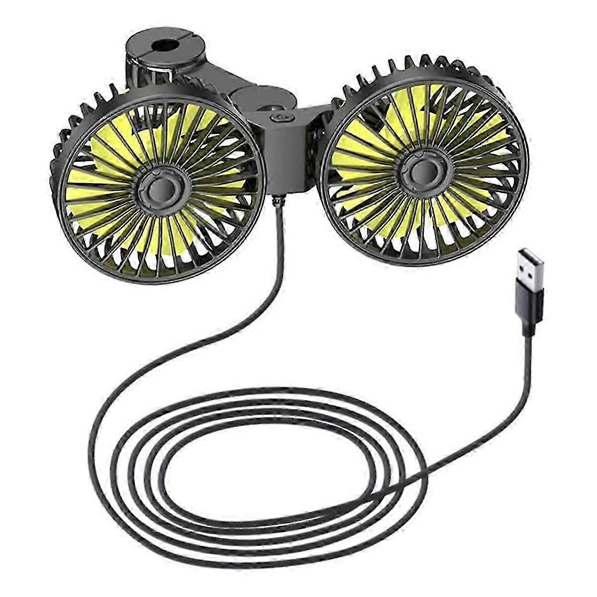 12-24V USB Car Fan Portable Cars Electric Fan for Home Office 360 Degree Rotatable Dual Head 3 Spee
