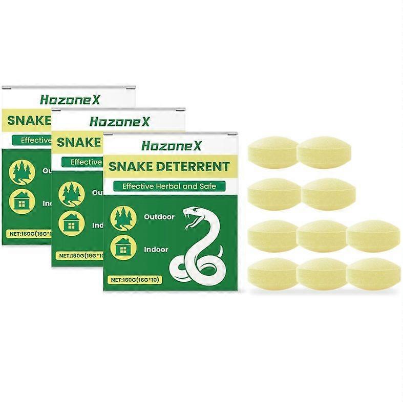 Powerful Snake RepellentMade with high-concentration plant oils, the snake repellent releases a smell that is disgusting to snakes, forcing them to leave your home. Snake repellent for yard can effectively repel copperhead, rattle snakes, water snakes, garter snakes, etc., providing strong protection for your home Long-lasting ProtectionNo need for frequent replacement or complicated cleaning, simply place where needed for an easy snake solution Family and Pet SafeMade with natural ingredients like lemongrass oil, cinnamon oil, and geraniol and castor oil. Snake repellent for house effectively repel snake without harmful substances, safety for humans, pets, vegetables, fruits, and the environment Easy to UseNo complicated installation. Open the package and place the snake repellent in areas needing protection to repel copperhead, rattle snakes, water snakes, garter snakes, lizards, mice, rats, ants, spiders etc., without any mess Widely ApplicableSnake away repellent for outdoor indoor is effective for driving away snakes in yard, homes, gardens, camping, patio, attics, tents, garages, cars, porch, trash bins, coop, farm equipment, sheds, barns, and boats Product List: 1/2/3PCS Snake Repellent Pill