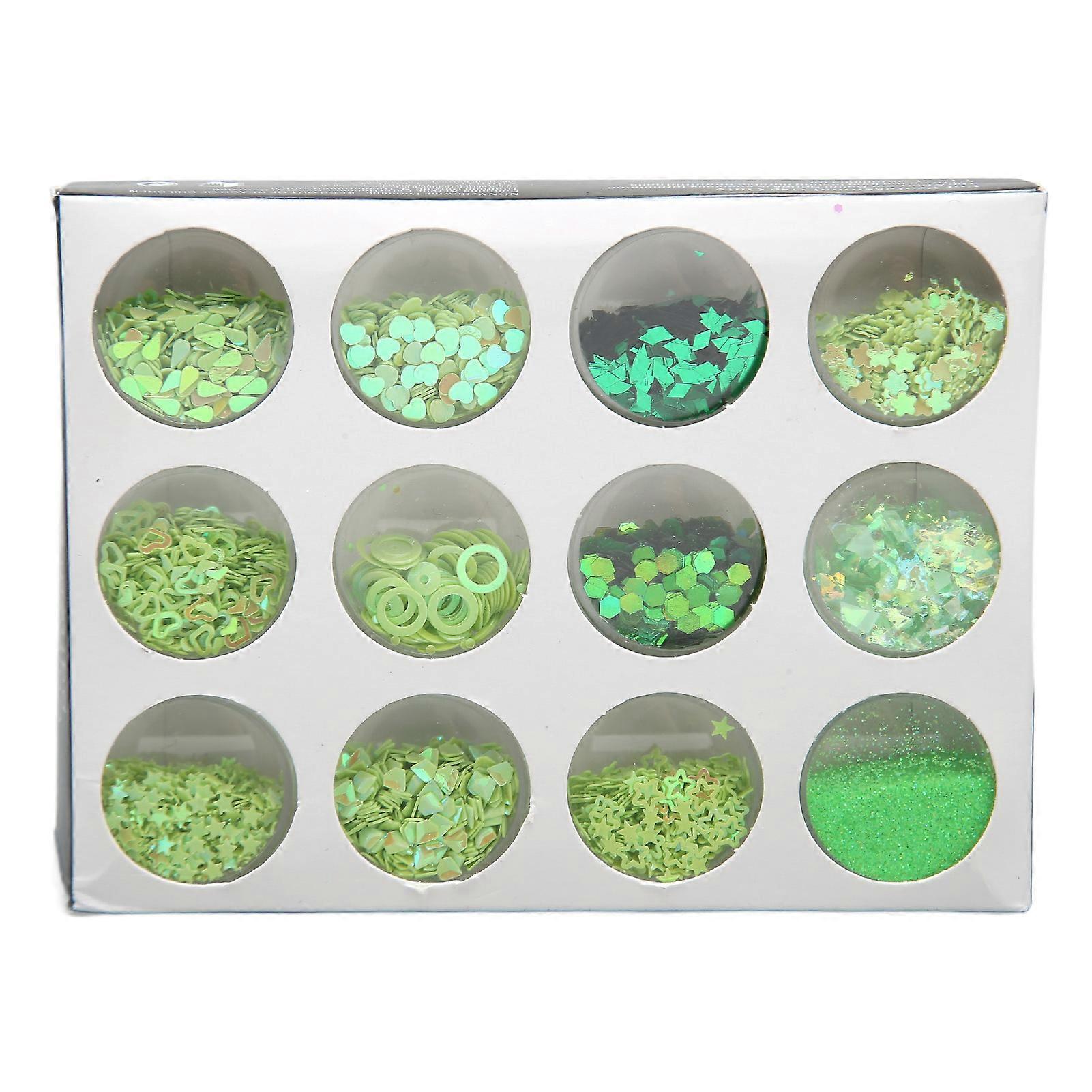 12 Grids Glitter Sequins Set Hand Made DIY Nail Art Glitter Sequins Decals Set 3D Nail Art Decorations Green