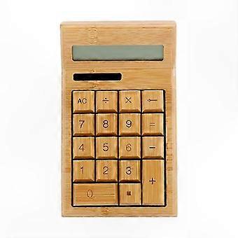 12-Digit LCD Display Calculator for Office and School Use with Bamboo Design