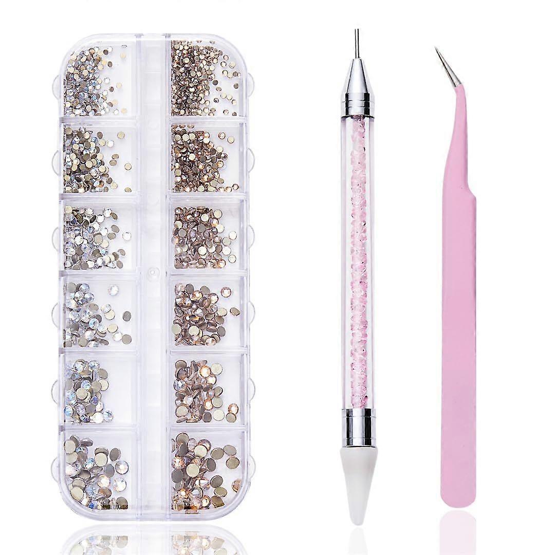12 grid flat back Rhinestones with Tweezers and Wax Pencil Gems , DIY decorative