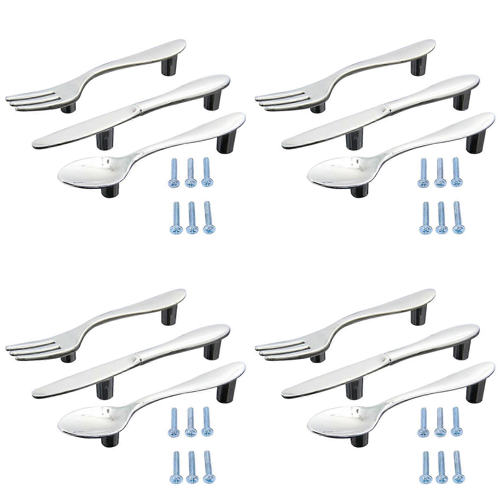 12 Pcs Silver Kitchen Cabinet Drawer Pull Handles Knobs (Knife Fork Spoon)