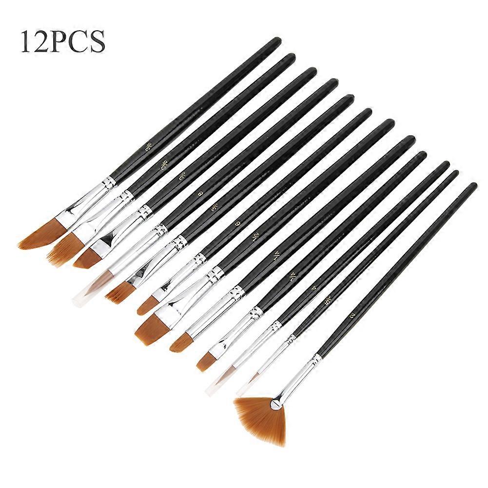 12PCS Black Rod Nylon Watercolor Acrylic Painting Set Watercolor Brush for Art Supplies
