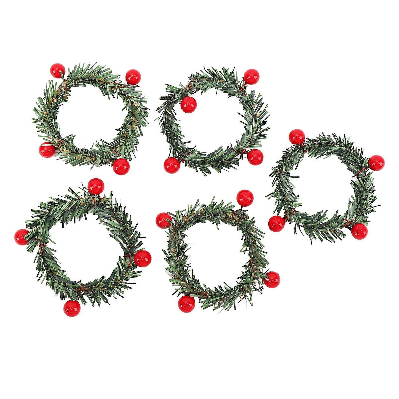 12Pcs Xmas Candle Rings Mini Wreaths Bulk for Pillars Tapers Artificial Berry with Grass Holiday Table Decorations