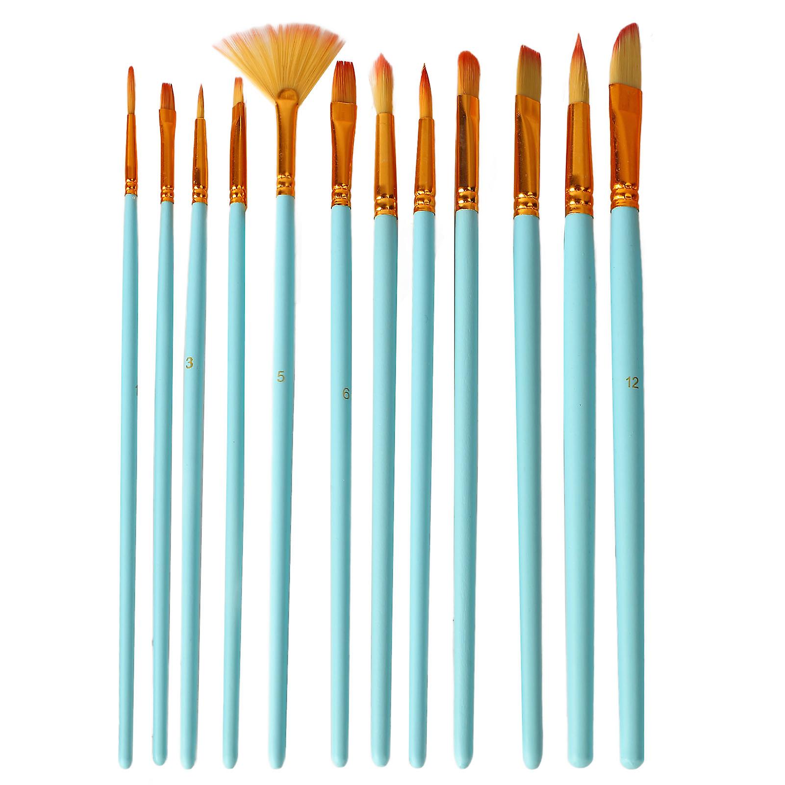 12Pcs Artist Paint Brush Set Assorted Painting Brushes Kit for Acrylic Watercolor Gouache Oil Craft Painting Blue
