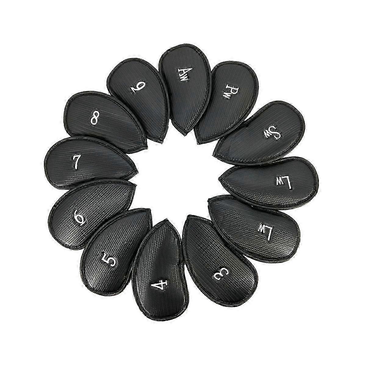 12Pcs Golf Iron Cover Head Covers Pu Leather Golf Club Hat Cover Embroidery Set Golf Supplies Club