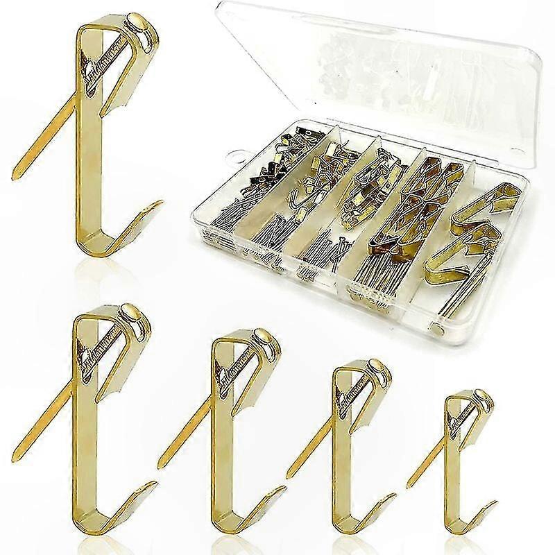 120-Pack Durable Metal Wall Hooks, Heavy Duty Picture Hangers in Gold, Multi-Size Hanging Kit for Home and Office Decor (5 Sizes Included)