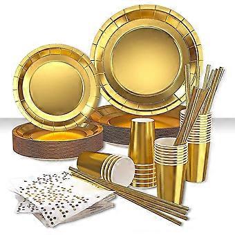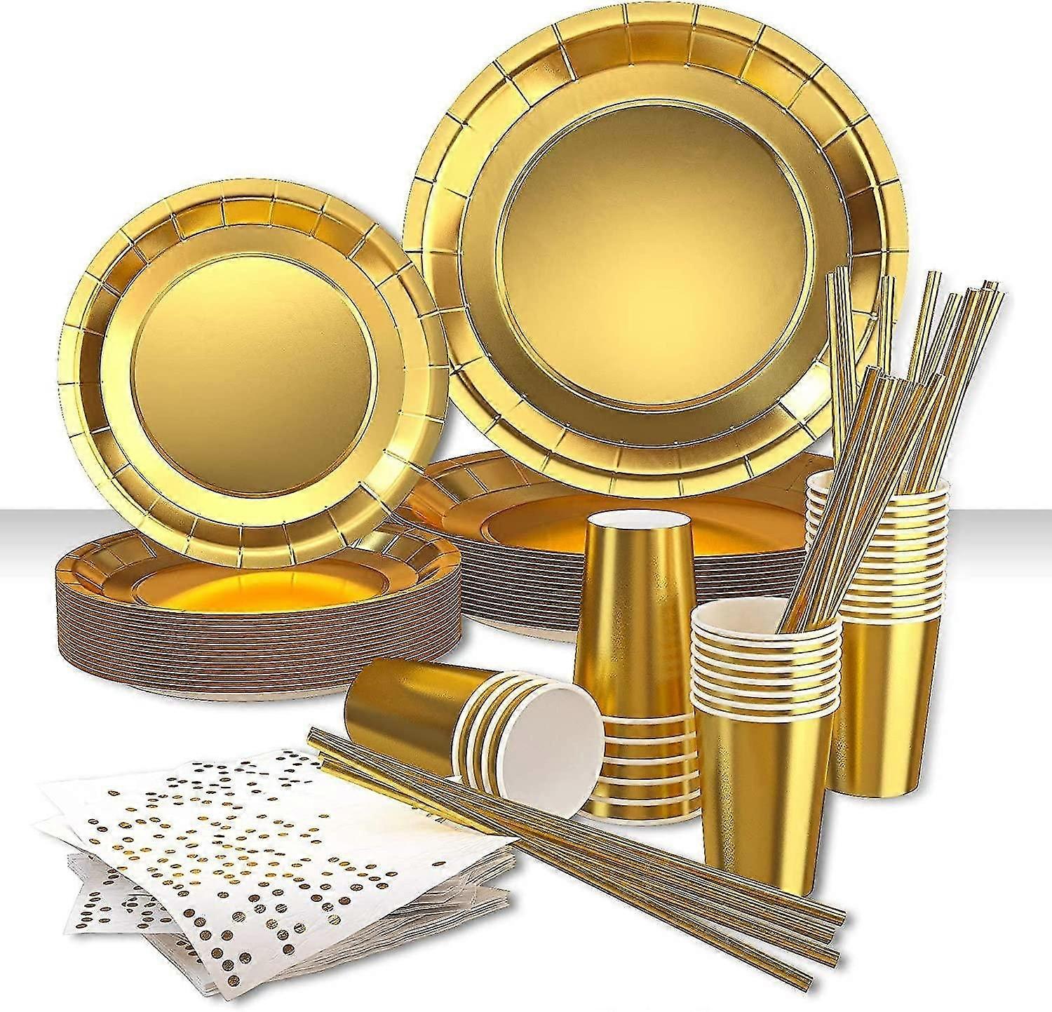120pcs Disposable Tableware Kit Birthday Gold Plate Dinner Cup Napkin Paper Straw for Party Festive
