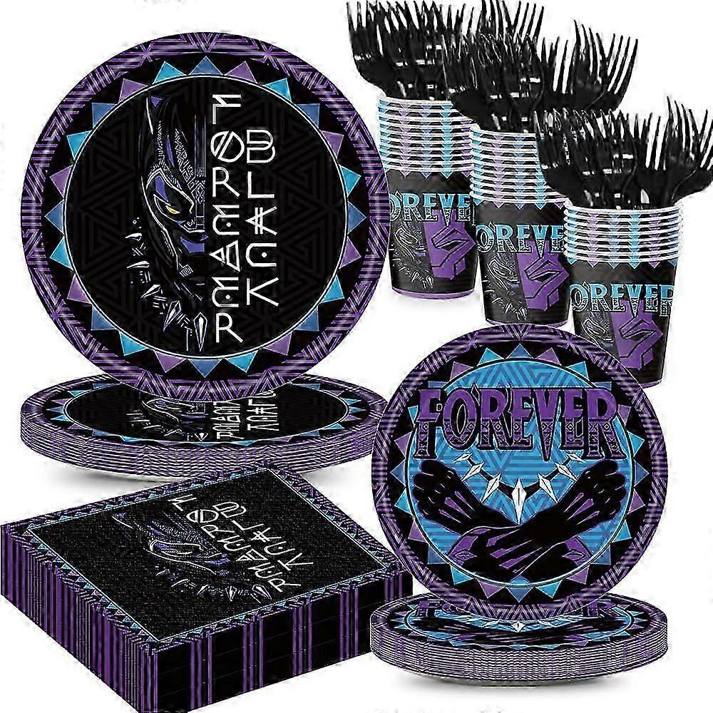 120pcs Black Party Panther Supplies Birthday Decorations Movie Theme Black Purple Plates Napkins Cups Forks Forever Party Favors| Serves 24 Guests