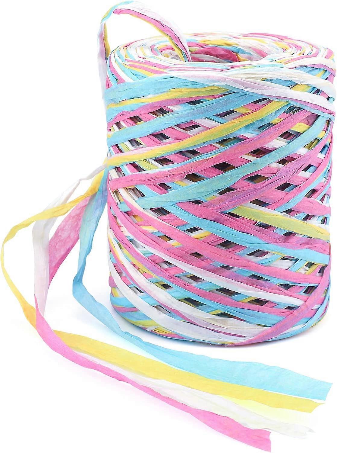 120M Colored Raffia Paper Ribbon, 4ply Raffia Paper Packaging Ribbons for Crafting String Twine for Gift Box Wrapping Yellow and White