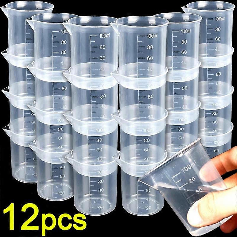12/1Pcs Measuring Cup Transparent Plastic Scale Beaker Cups Lab Chemical Laboratory Container Jugs Kitchen Baking Tool 100ml