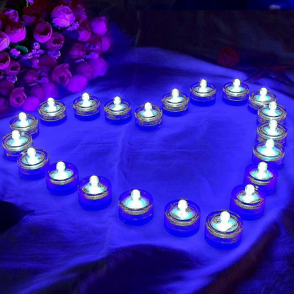 12pcs Submersible Led Light, Blue Waterproof Flameless Candle Tealights,underwater Pool Lights