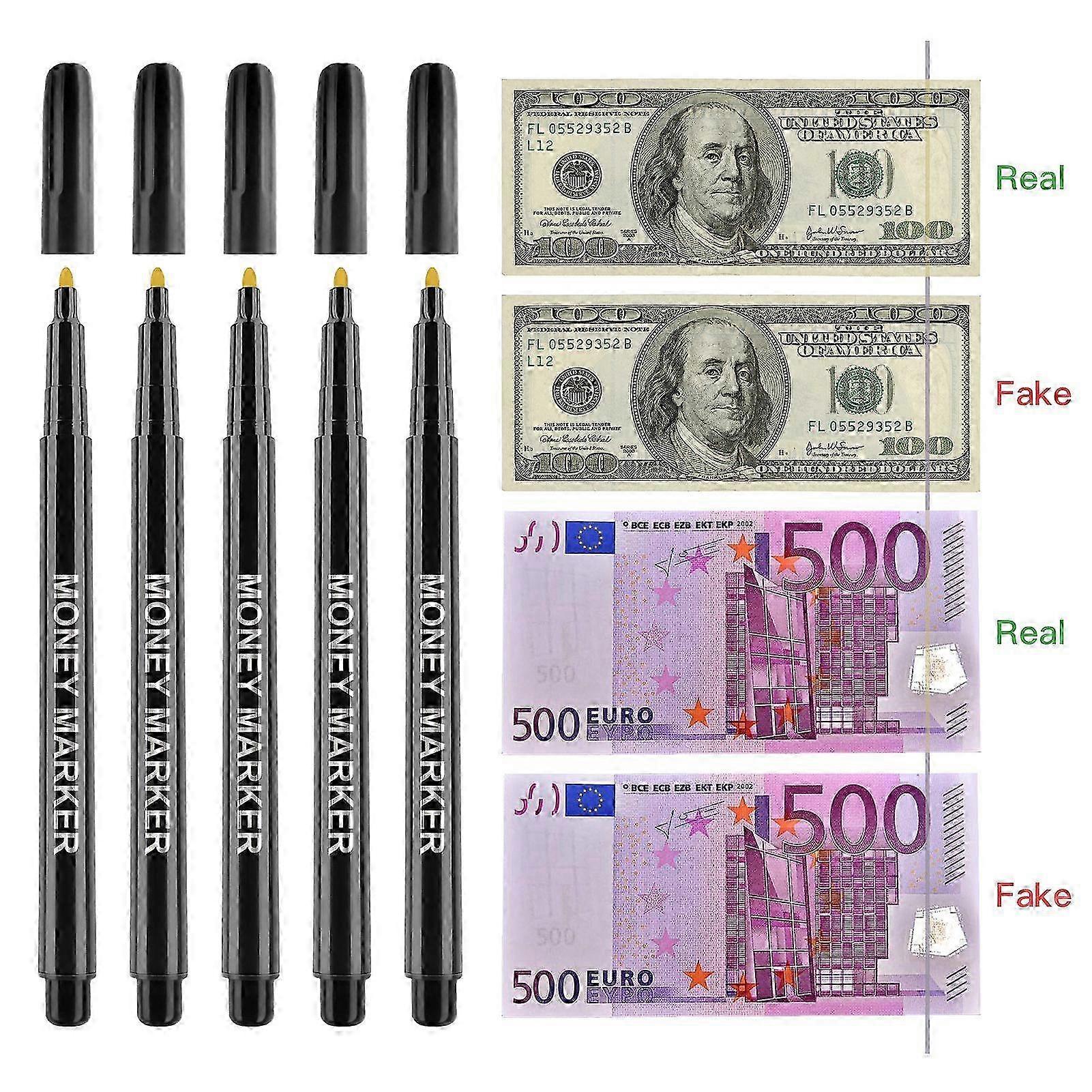 12pcs Counterfeit Pen Fake Money Detector Markers for EURO USD RMB and Other Countries Bills Cash Check-Gold for Real, Black for Fake Easy and Fast to