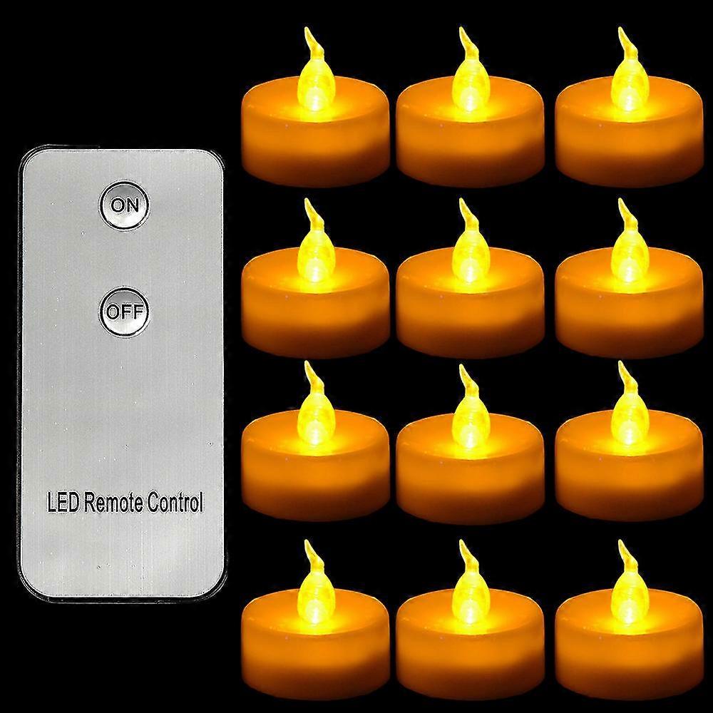 12PCs Led Tea Lights with Timer, Electric Flickering Battery Operated Led Candles Tea Lights with Remote Control for Home, Room, Table, Halloween, Chr