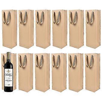 12pcs Wine Gift Bags, Single Wine Bottle Bag, Kraft Paper Champagne Carry Bag, Blank Wine Tote Bag With Handle