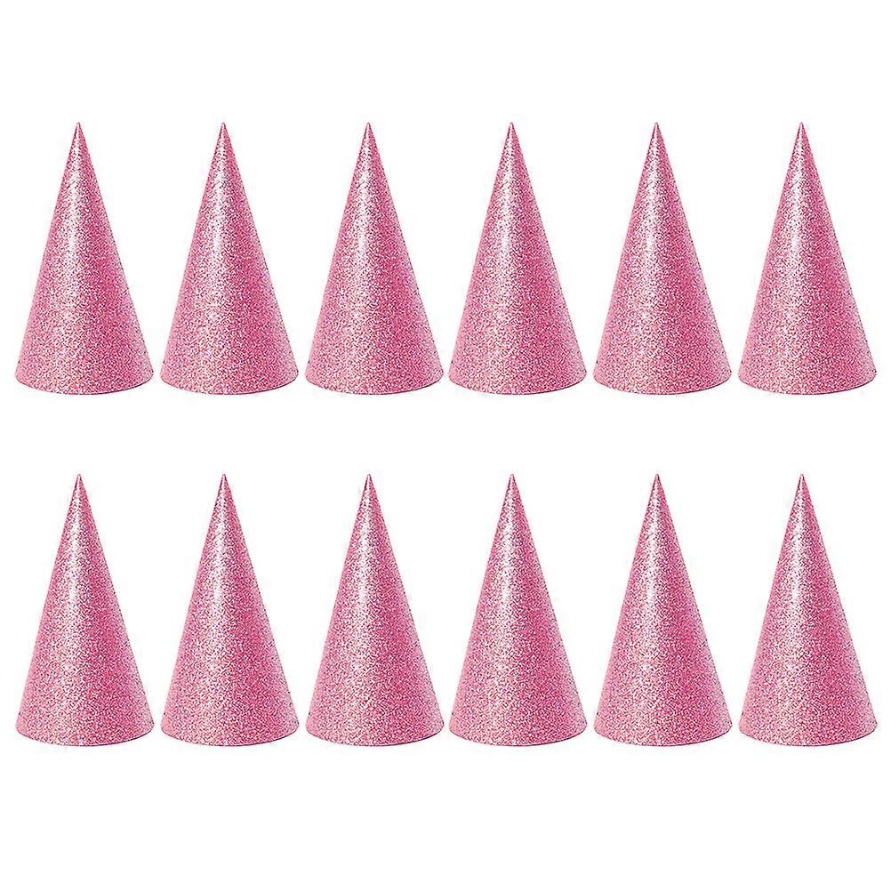 12PCS Glitter Cone Party Hats Triangle Birthday Hats for Kids and Adults Party Decorations (Pink)