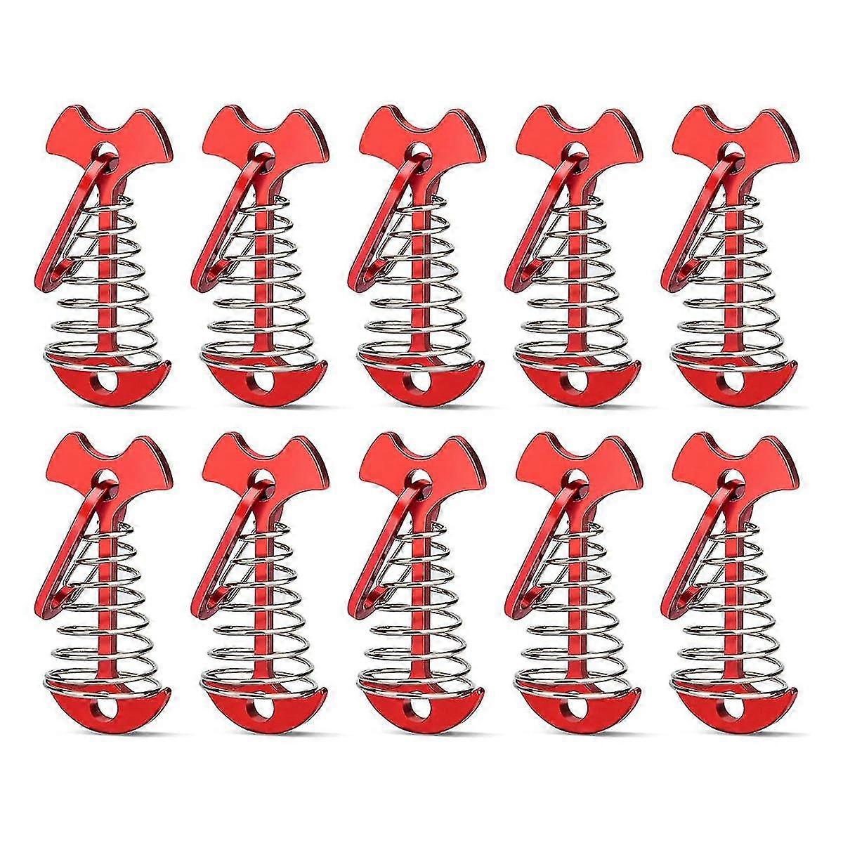12PCS Tent Stakes Aluminum Deck Tie Down, Deck Anchor Pegs, Tent Rope Tighteners with Spring Buckle Red