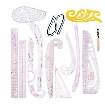 13 قطعة من مسطرة الخياطة، خط مسطرة فرنسية منحنية، مجموعة حصيرة القطع، كم مسطرة القياس، سكين القطع الفرنسي المنحني، أداة الخياطة